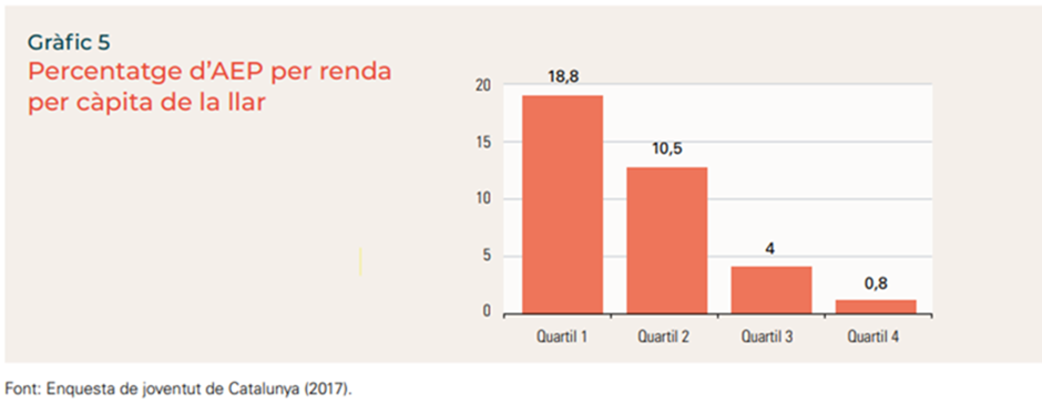 Reducir el abandono escolar prematuro (AEP), entendido como el hecho que los y las estudiantes no obtengan ninguna titulación académica por encima de la secundaria inferior, es uno de los retos principales actualmente, puesto que permite garantizar un nivel de estudios superior a la sociedad y, en consecuencia, condiciona directamente las oportunidades y el futuro de los y las jóvenes del territorio.